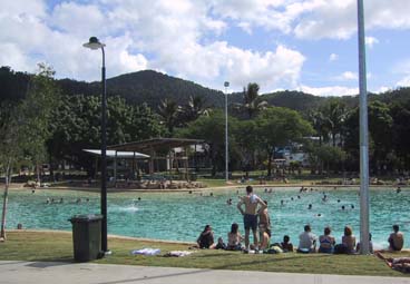 Hier haben sie wegen der Quallen Gefahr sogar eine Lagune gebaut, damit man sicher schwimmen kann.
