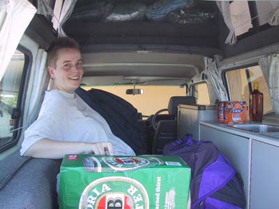 Bevor man eine Reise tut, geht man einkaufen, damit man alles wichtige dabei hat: Es ist sehr wichtig, dass man in trockenen Gegenden zu trinken dabei hat (erste Station Bottle shop :):