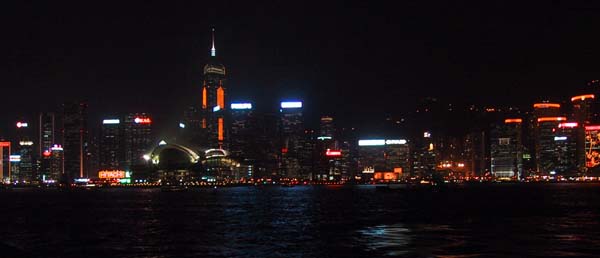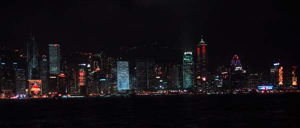 Sicht vom Hong Kong Island Peak auf Kowloon (Bildteil oben links) und Hong Kong Island am Tag und kurz bevor es dunkel war.